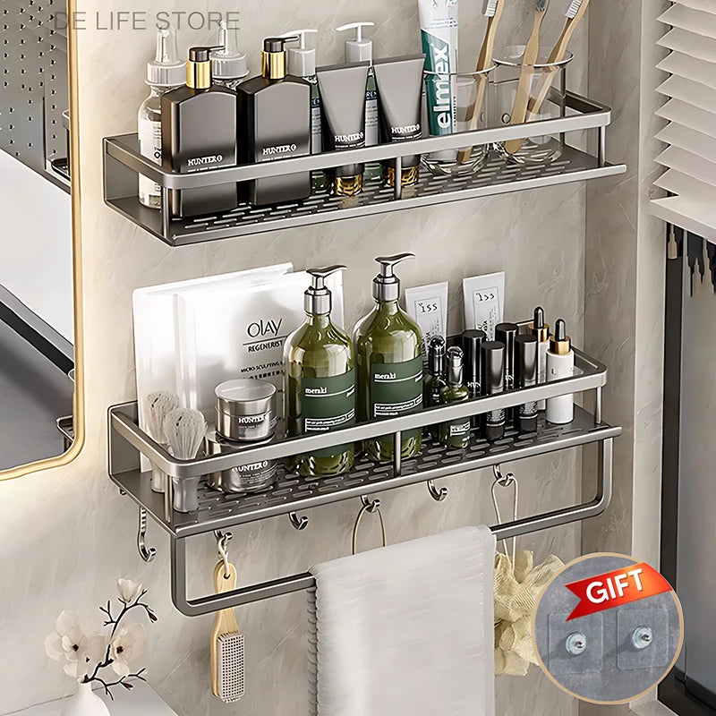Compared to stainless steel or spray painted finishes, our bathroom shelves are made of space aluminum, which is more resistant to corrosion and scratches and provides superior texture. The surface is specially treated to resist oxidation in humid environments, ensuring that the shelves maintain a brand new appearance for a long time.