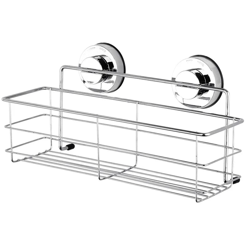 Bathroom Shelf Organizer Shower Storage Rack Stainless Steel Wall Mounted Toilet Shampoo Holder No Drill Vacuum Suction Cup