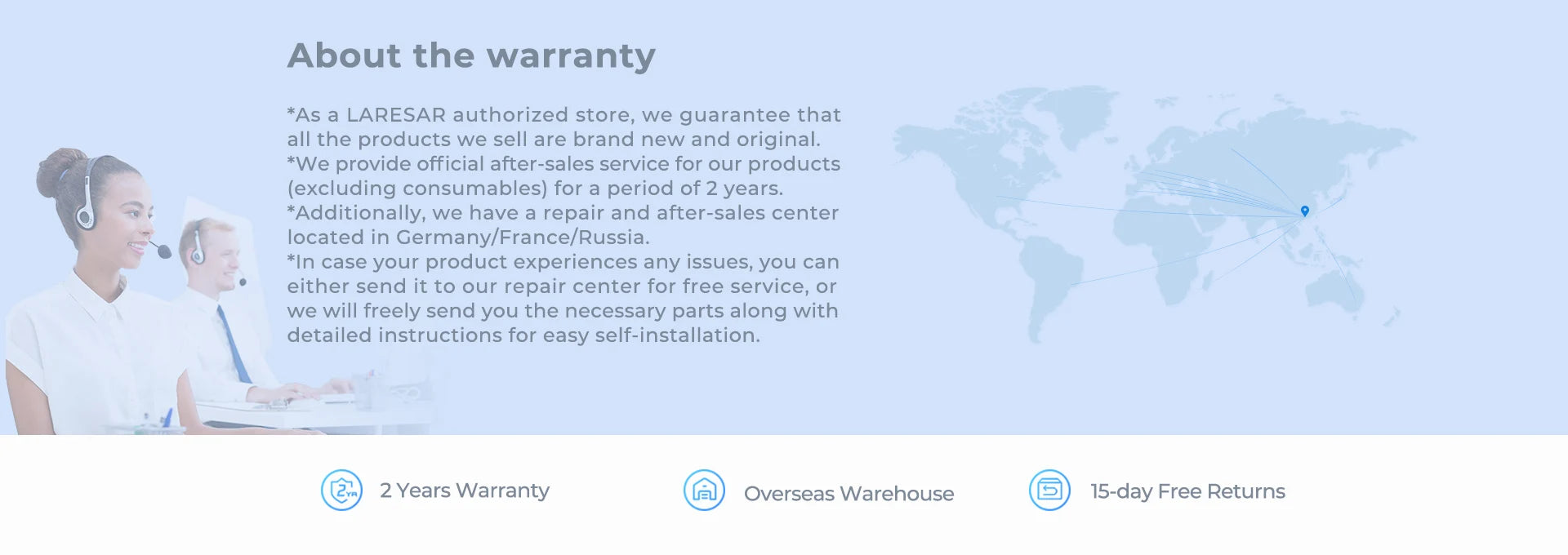 *Additionally, we have a repair and after-sales center located in Germany/France/Russia.