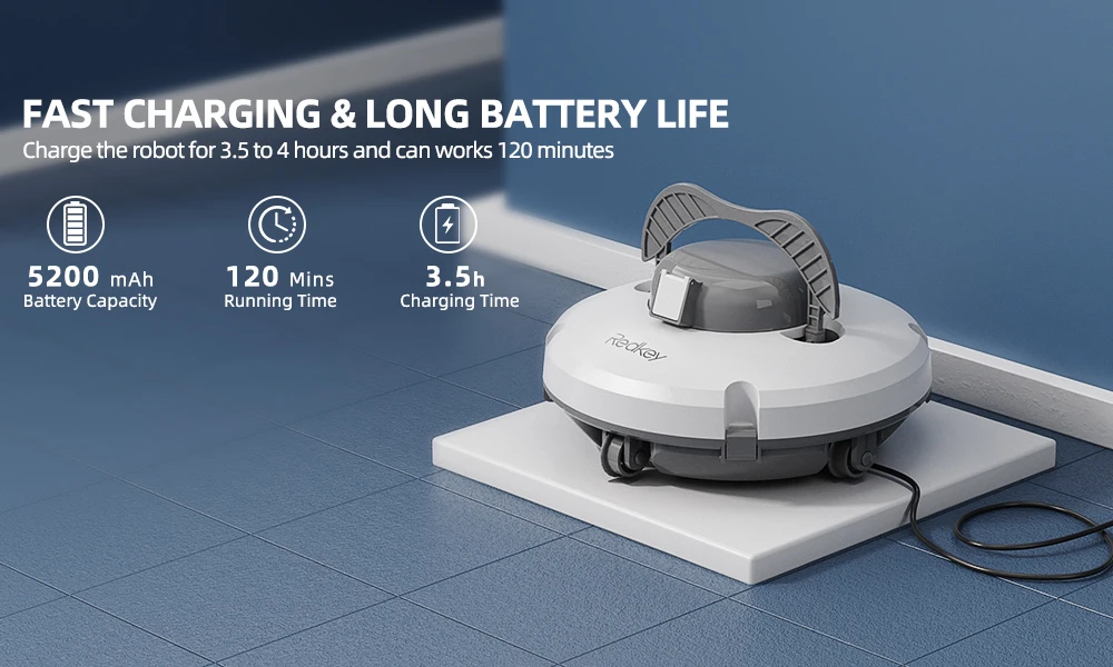 Redkey S100 Cordless Robotic Pool Vacuum for Ground Pool Automatic Pool Vacuum Cleaner Lasts 120 Mins with Strong Suction