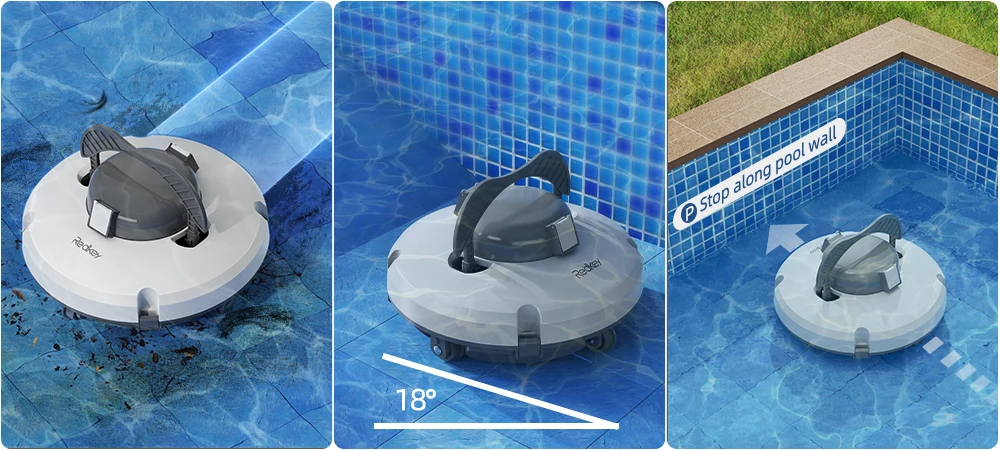 【Smart Self-Parking Tech】Our pool vacuum robot will automatically park near the edge of your pool when the battery is low, or it has completed a cleaning cycleor and the filtration system is jam and need to cleaned. You just use the hook to easy take it out of the pool without getting wet.