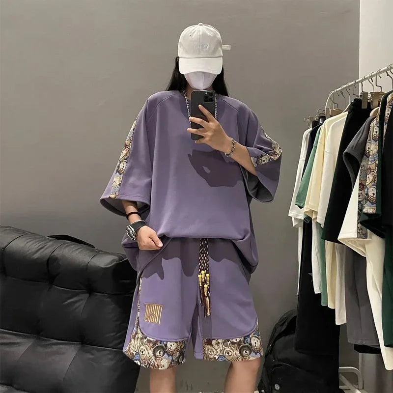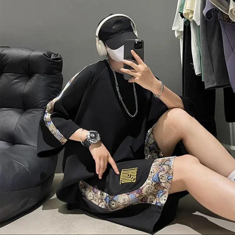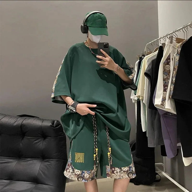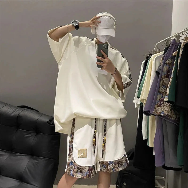 Sweatshirts Tracksuit T-shirts Shorts Suits For Men Spliced Graphic Sweatsuit Cotton Man Sets Luxury Offer Youthful Emo Kpop Xl