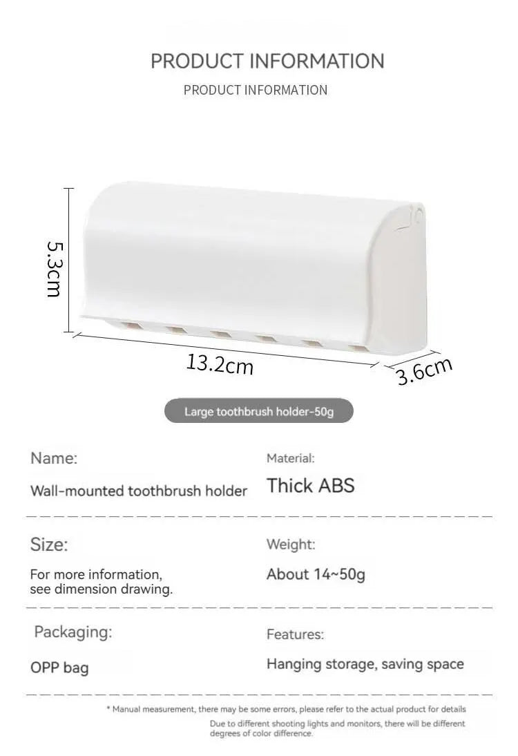 Wall-mounted toothbrush organizer, easy to take, space-saving, comes with a dust cover, no fear of dust, storage is cleaner, easy to hang simple and versatile, independent hanging refuses to cross-infection care of dental health, the bottom of the hollow design, ventilation and breathable bottom of the rapid leakage of water, not water is not easy to breed bacteria, can be detached for easy cleaning.