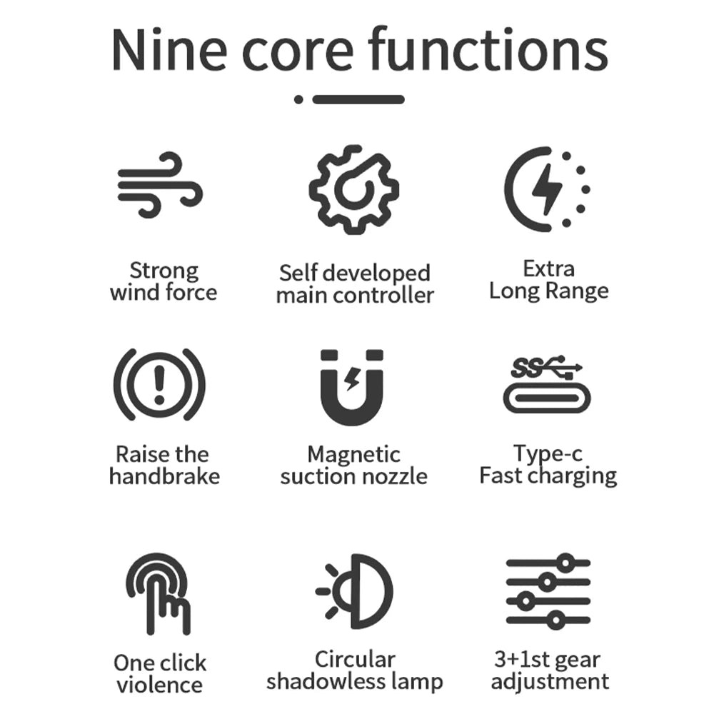 4.Suitable for air cushion blowing suction, computer equipment cleaning, industrial dust blowing, charcoal combustion, car blowing water blowing snow, studio shooting wind, blow-drying pets, available in all seasons, and many other uses.